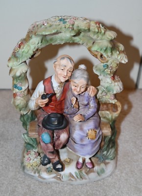 Norleans Bisque Porcelain - Old Man & Woman on bench under